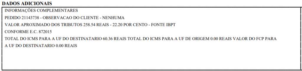 Veja que esses dados estão descritos no campo de informações da NF-e: