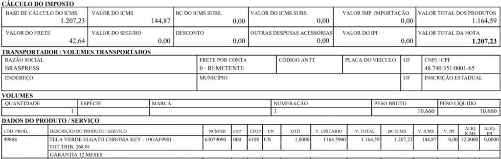 Essa é uma aquisição de uma mercadoria de informática, para gravações caseiras. Sua venda ocorreu em um site especializado nesse tipo de equipamento. O valor da mercadoria é público, e não varia de acordo com o destinatário.